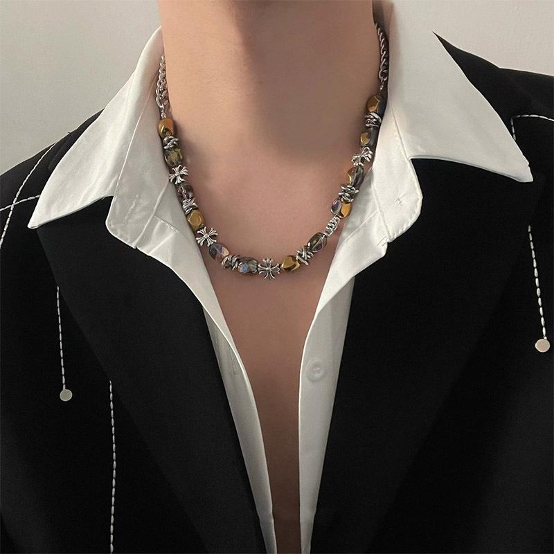 Cruciferous Beaded Stitching Necklace Men's Cold Style Niche Design Clavicle Chain Women's Hip-Hop European New All-Match Necklace Chain