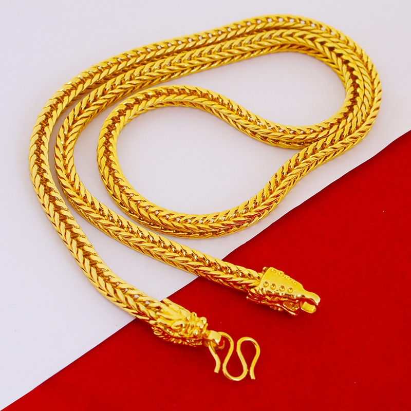 18K gold-plated faucet fox tail necklace men's imitation gold 6N woven square fox tail neck chain trembles fast hand live gold chain