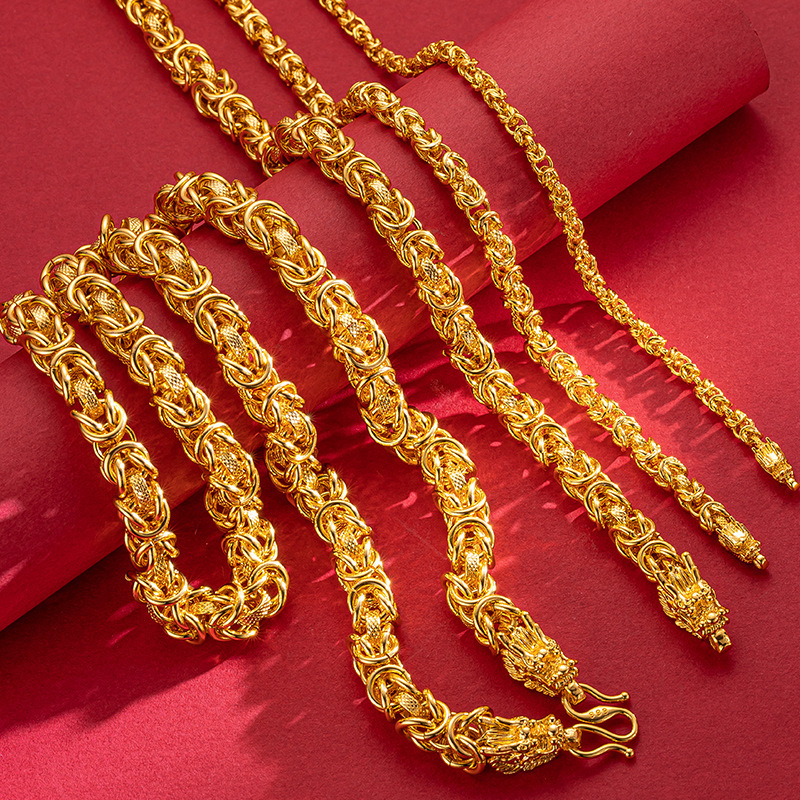 Sand Gold Jewelry Men's Long-standing Light Luxury Gloss Keel Necklace Men's Gold Shop Same Style Jewelry Faucet Chain