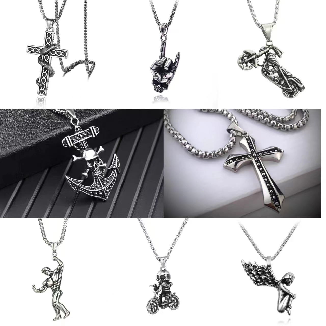 Foreign trade jewelry wholesale New Moon Skull men's titanium steel pendant necklace stainless steel domineering jewelry