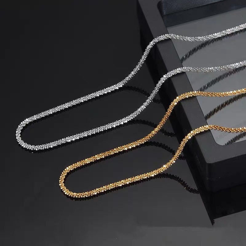 Gypsophila Necklace for Women, Sparkling Super Shiny Titanium Steel Clavicle Sweater Chain for Men, Cauliflower Chain, Versatile Plain Chain for Men