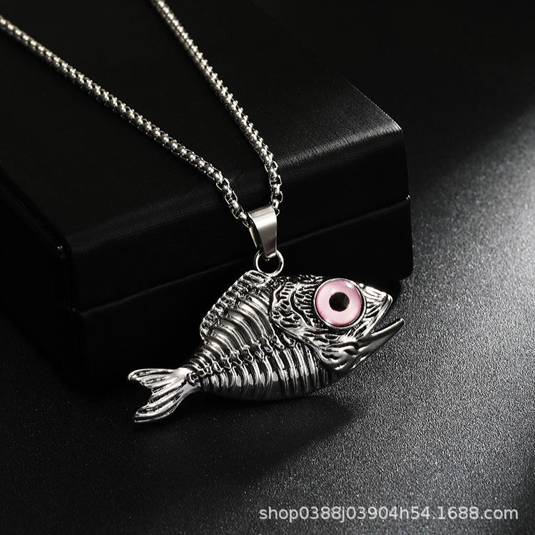 European and American Cross-border Retro Blue Eyes Fishbone Necklace Personalized Punk Style Men's Trendy Niche Long Woolen Chain Accessories