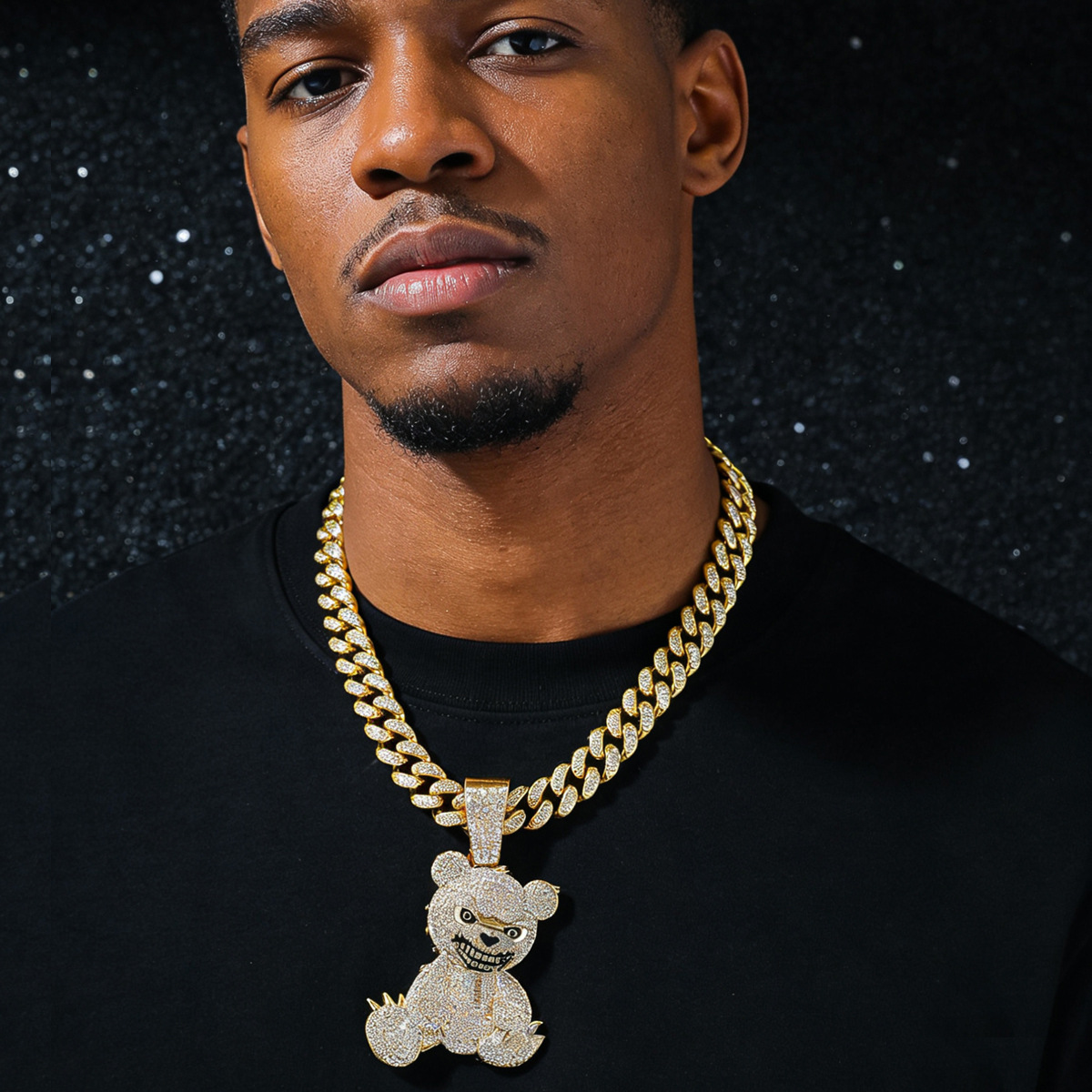 European and American Cross-Border New Style Personalized Men's Hip-Hop Style Full Diamond Cuban Chain Animal Bear Pendant Sweater Chain Necklace
