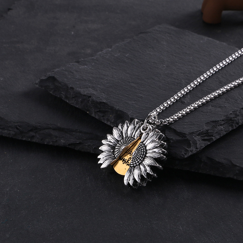 Long Vintage Sunflower Necklace Men's Personalized Harajuku Style Sunflower Totem Pendant Hip Hop Hiphop Jewelry Women