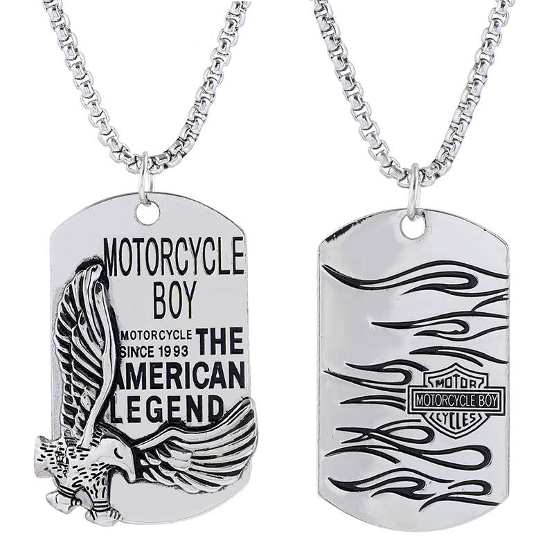 TOHM Cross-border Motivational Motto Stainless Steel Shield Long Pendant Men's Personality Baseball Plate Inscription Titanium Steel Necklace