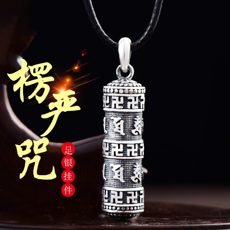 Sterling silver s990 charm pendant pendant amulet six words mantra pure silver vintage necklace for men and women