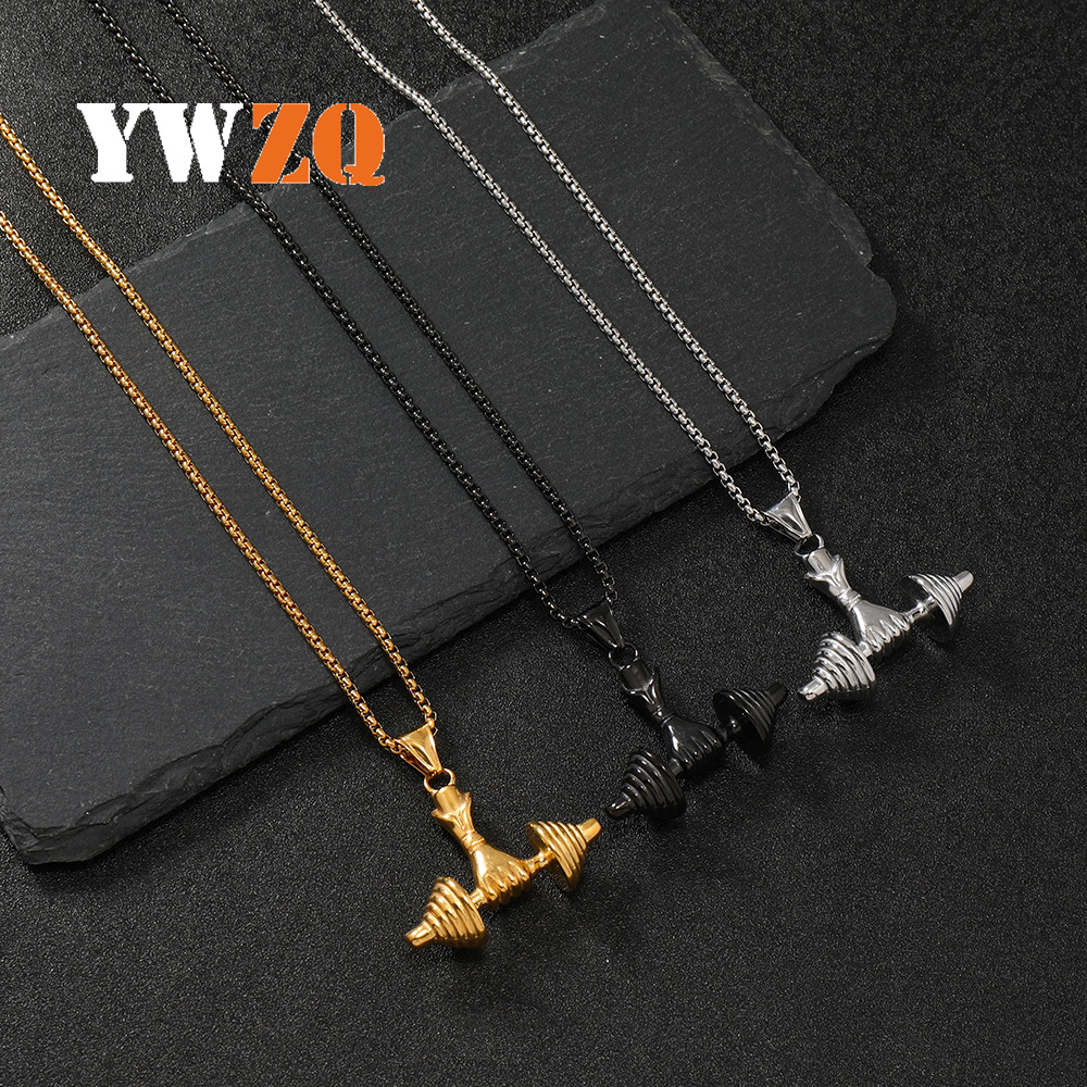Cross-Border fashion fitness weightlifting dumbbell necklace men's personality punk hip hop casting titanium steel necklace pendant jewelry