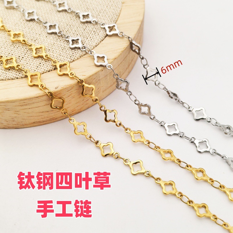 Stainless Steel Handmade Chain 18K Real Gold Electroplated Four-leaf Clover Love Chain Diamond Ladies Bracelet DIY Jewelry Chain