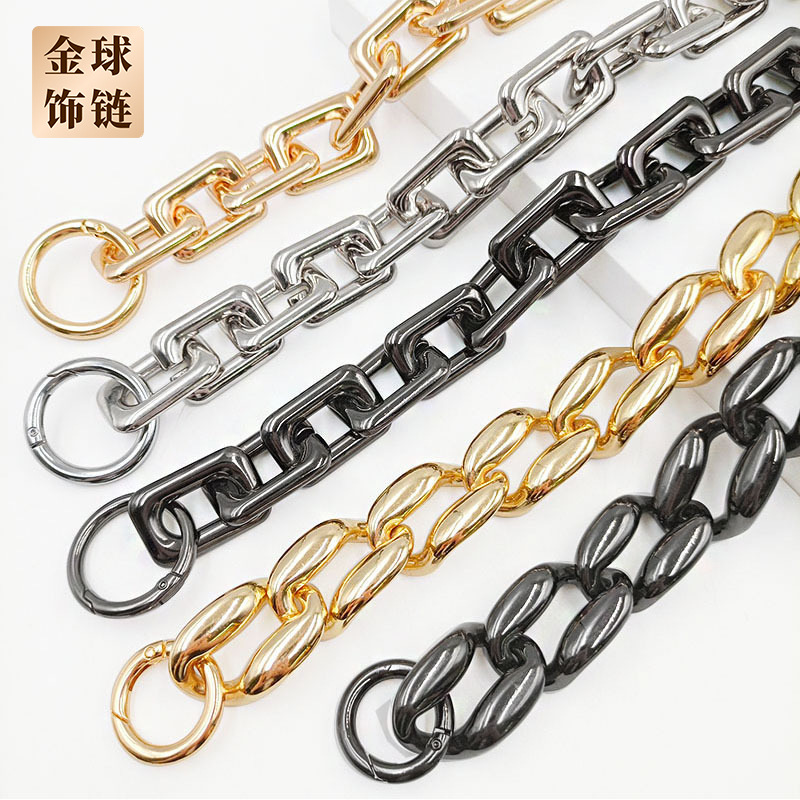 Three-In-One Chain, High-End Women's Bag Chain Crossbody with 6mm Copper O Oblique Hanging Chain, Copper Flat O Bag Chain