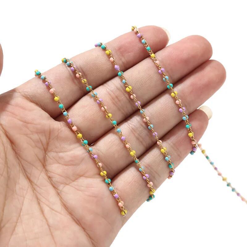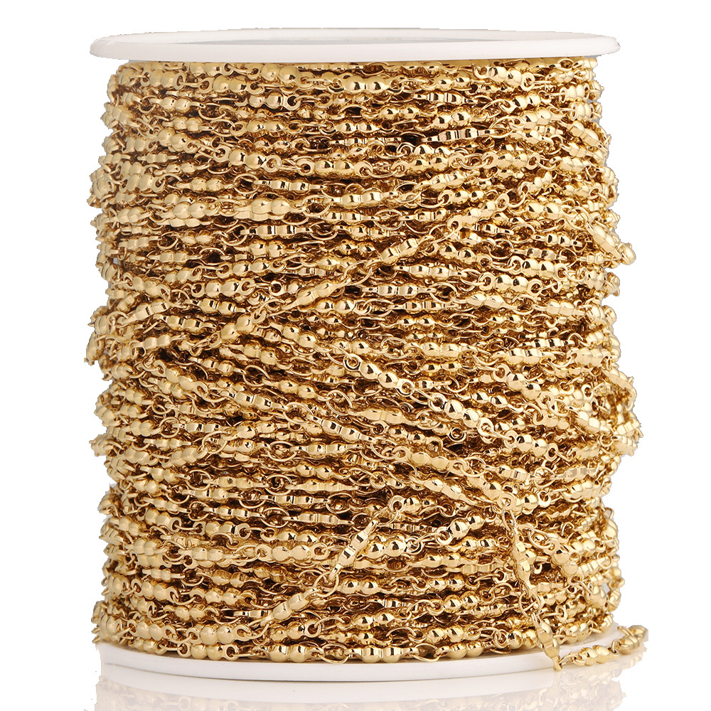 Vacuum Electroplating Color-Preserving Stainless Steel Double Bead Handmade Chain DIY Women's Bracelet Anklet Jewelry Rice Chain Semi-Finished Accessories