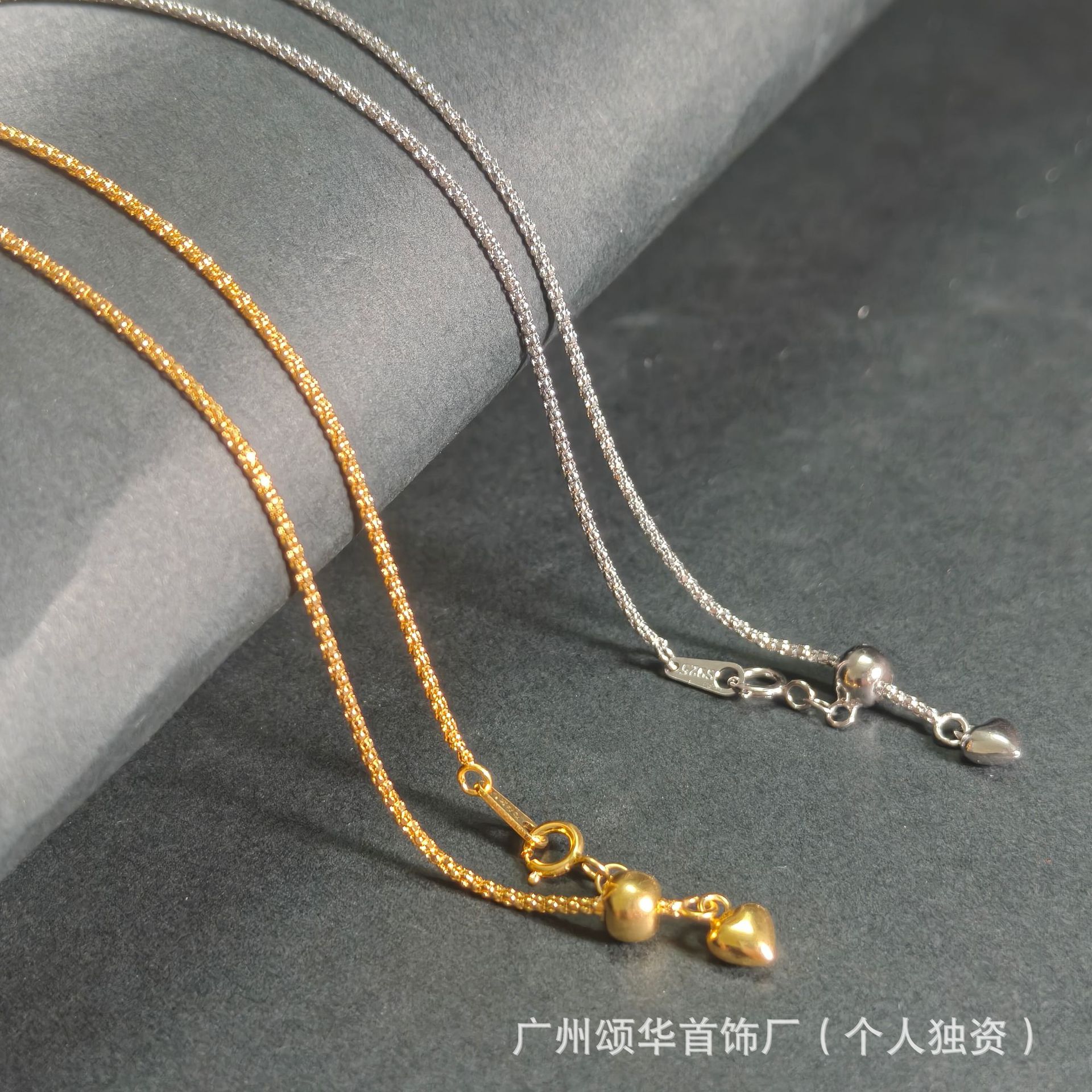 S925 Sterling Silver Small Round Heart Chain for Women, Adjustable Stretchable Silver Chain with Heart-Shaped Pendant, Collarbone Chain, Sweater Chain Wholesale