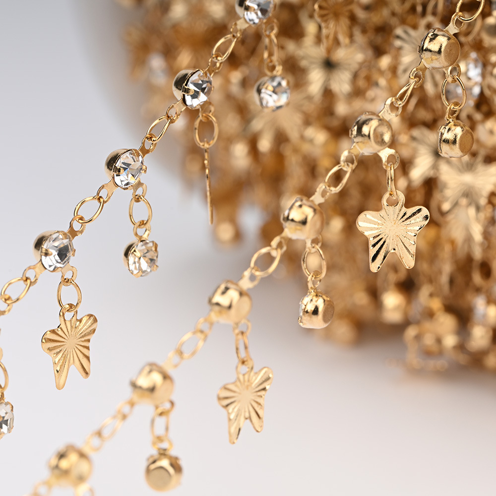 18K stainless steel star chain color retaining five-pointed star cross chain wholesale Women's anklet chain waist chain Handmade chain diy