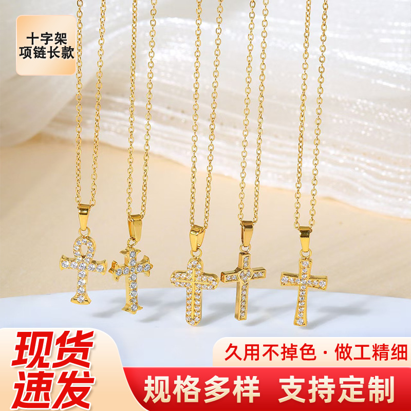 Women's Fashion Commuter Cross Necklace Long Gold Light Luxury Necklace Fashion Trend Chain Factory Direct Sale