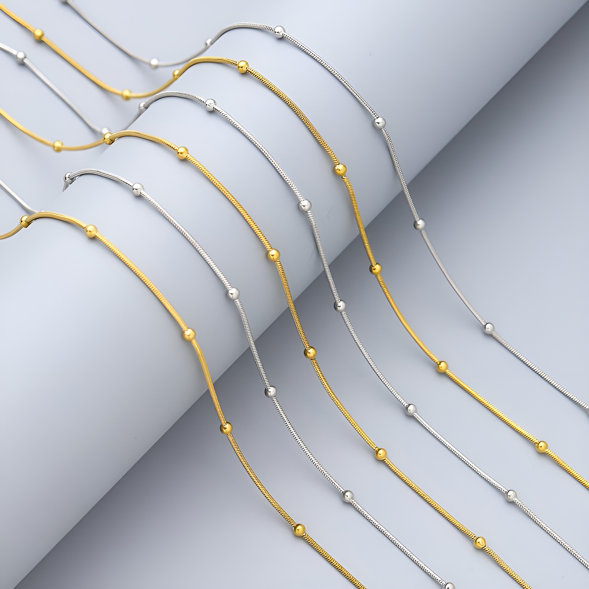 Stainless Steel Round Snake Bead Necklace 18K Gold Fadeless Women's Necklace Temperament All-match Titanium Steel Chain Chain
