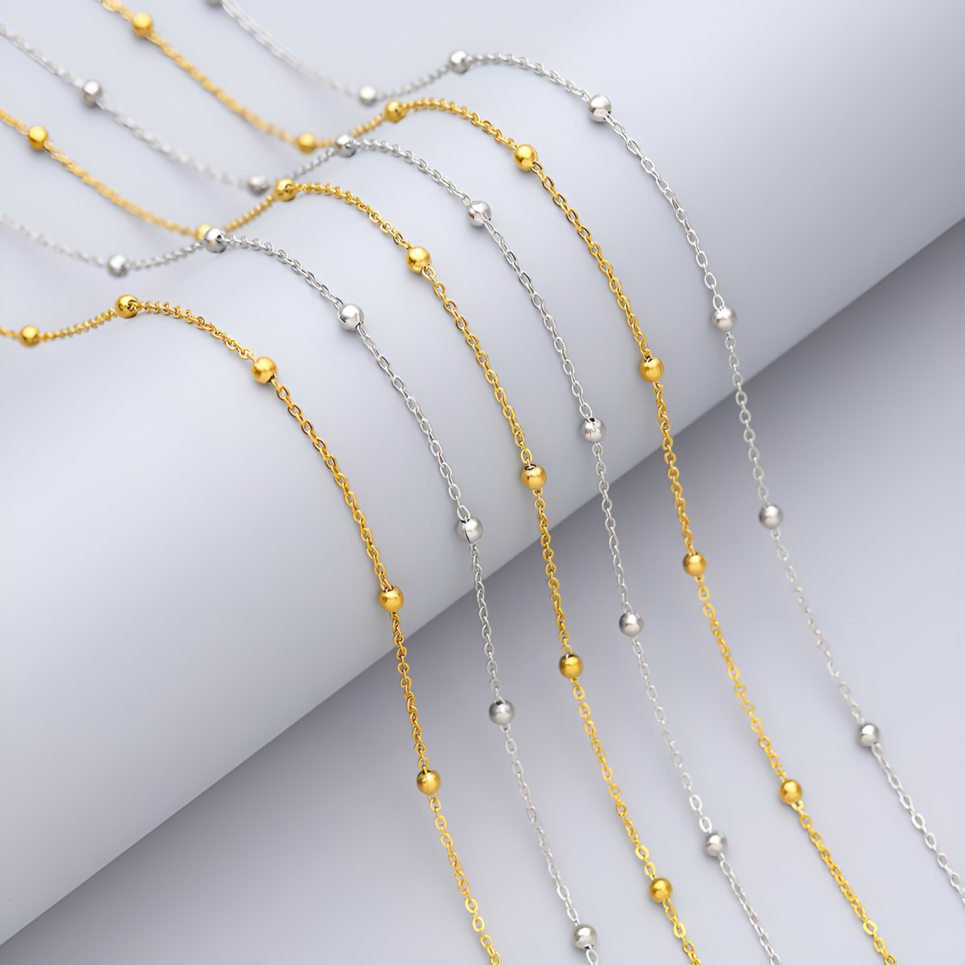European and American Stainless Steel Universal Chain Women's Pin-Style Adjustable Bead Necklace Jewelry
