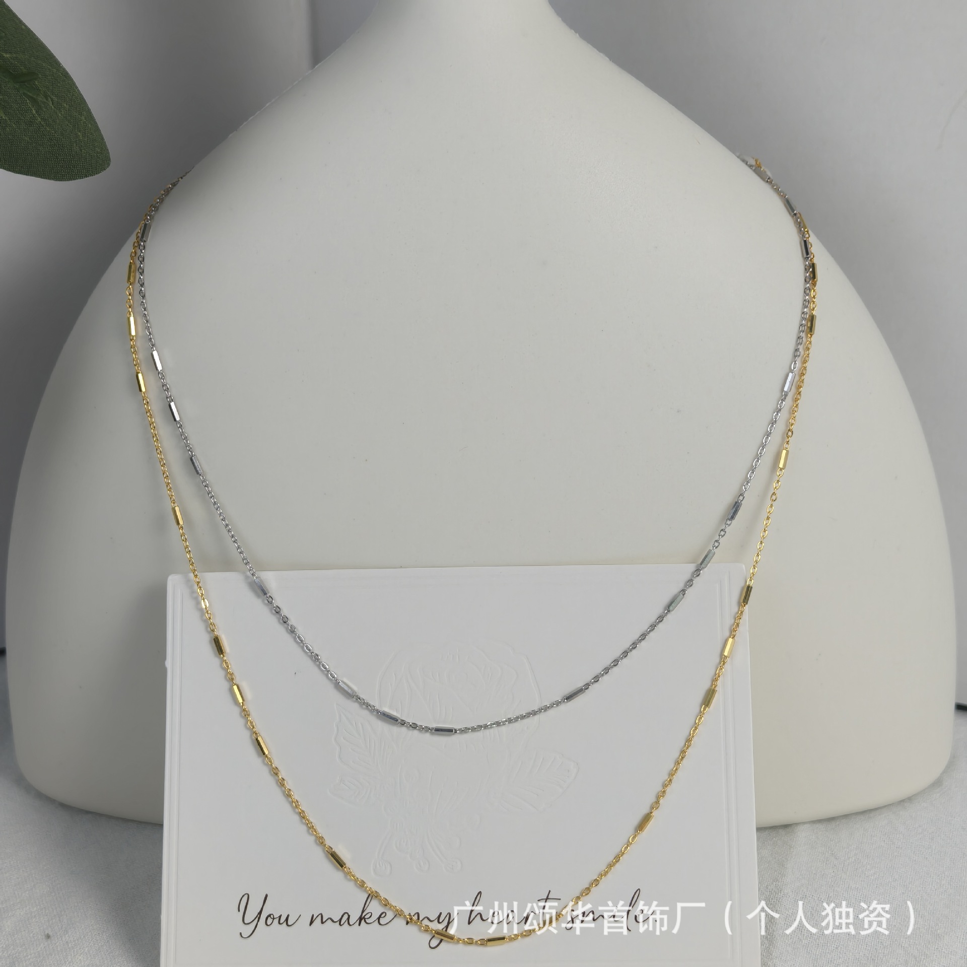 Women's Trendy Necklace Fashion Clavicle Chain Pendant with Silver-Plated Smooth Flat Chain Brass Necklace Thin Chain Material