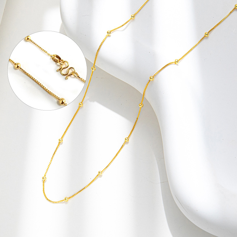 Copper plated 18K real gold bead box chain clavicle chain ins necklace women's short simple elegant all-match gift