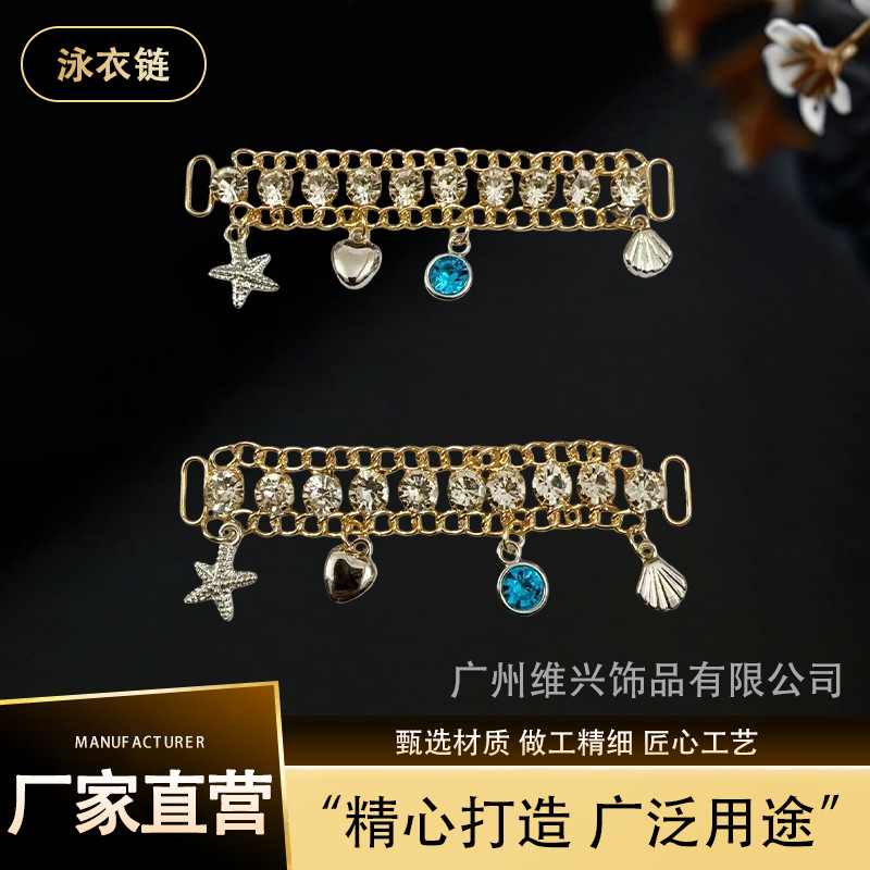 Cross-Border Swimsuit Accessories Swimsuit Metal Chain Bikini Decorative Diamond Chain Ocean Style Tassel Chain Jewelry Accessories
