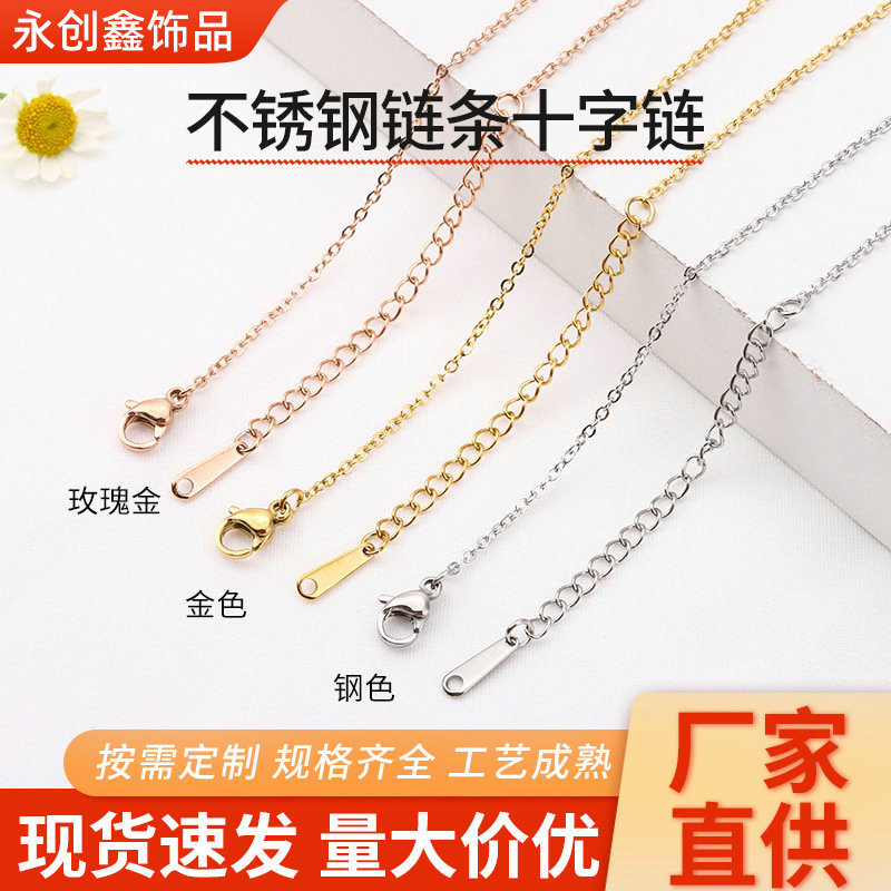 Stainless steel chain cross chain vacuum plating 18K gold female accessories naked necklace diy chain jewelry accessories