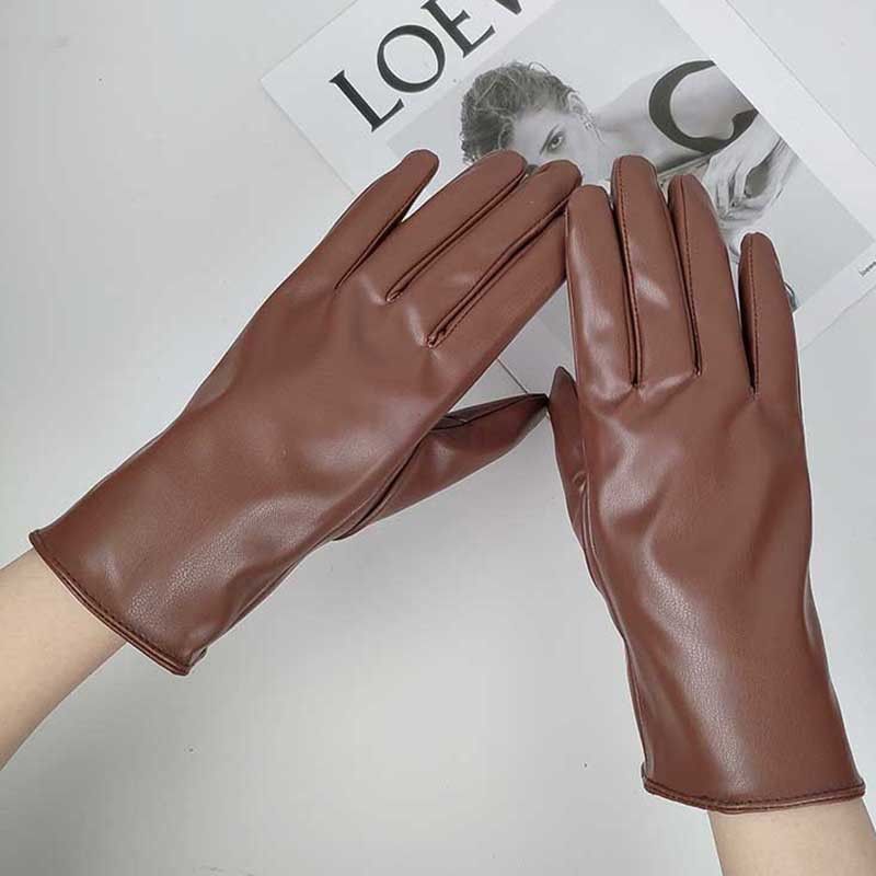 Plush Fashion Elegant Style Ins Photo Props Cos Short Imitation Leather Women's Autumn and Winter Warm Pu Leather Gloves