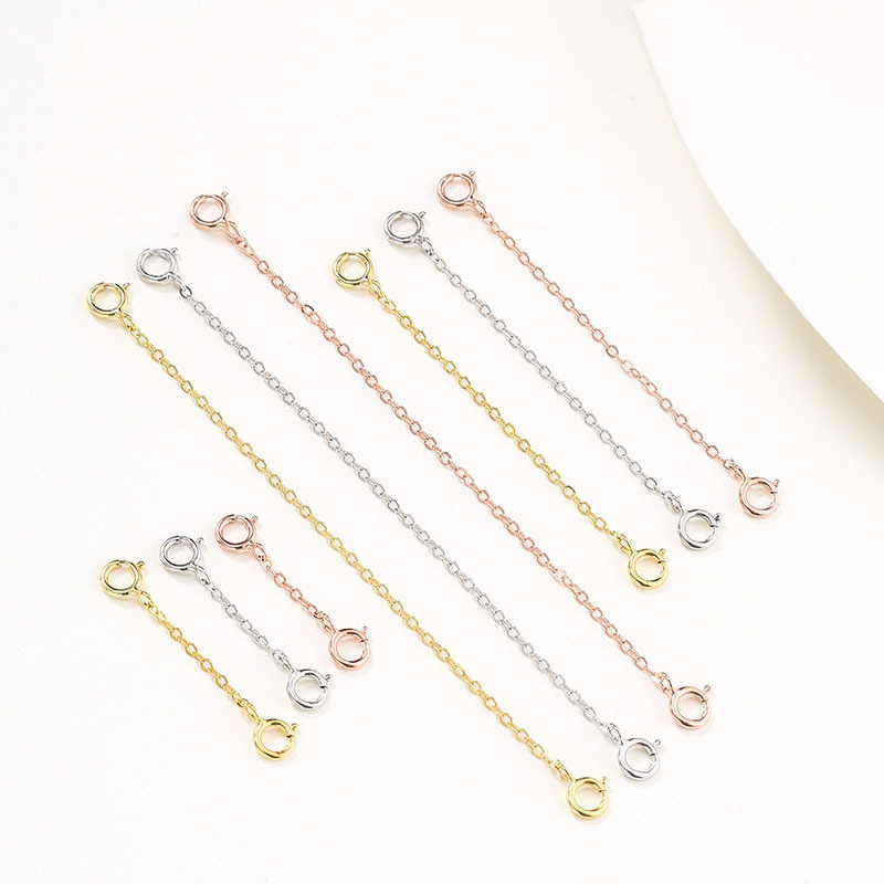 S925 Silver Chain Women's Bracelet NecKlace Double Elastic BucKle Adjustment Chain Accessories Silver Plated 18K Gold diy Extension Chain