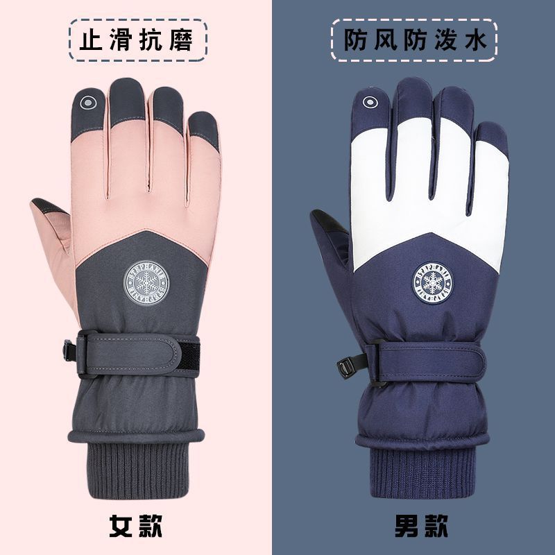 Men's and Women's Outdoor Five-Finger Couple Touch-Screen Ski Gloves Winter Thickeneded Velvet Cotton Warm Cycling Waterproof and Non-Slip