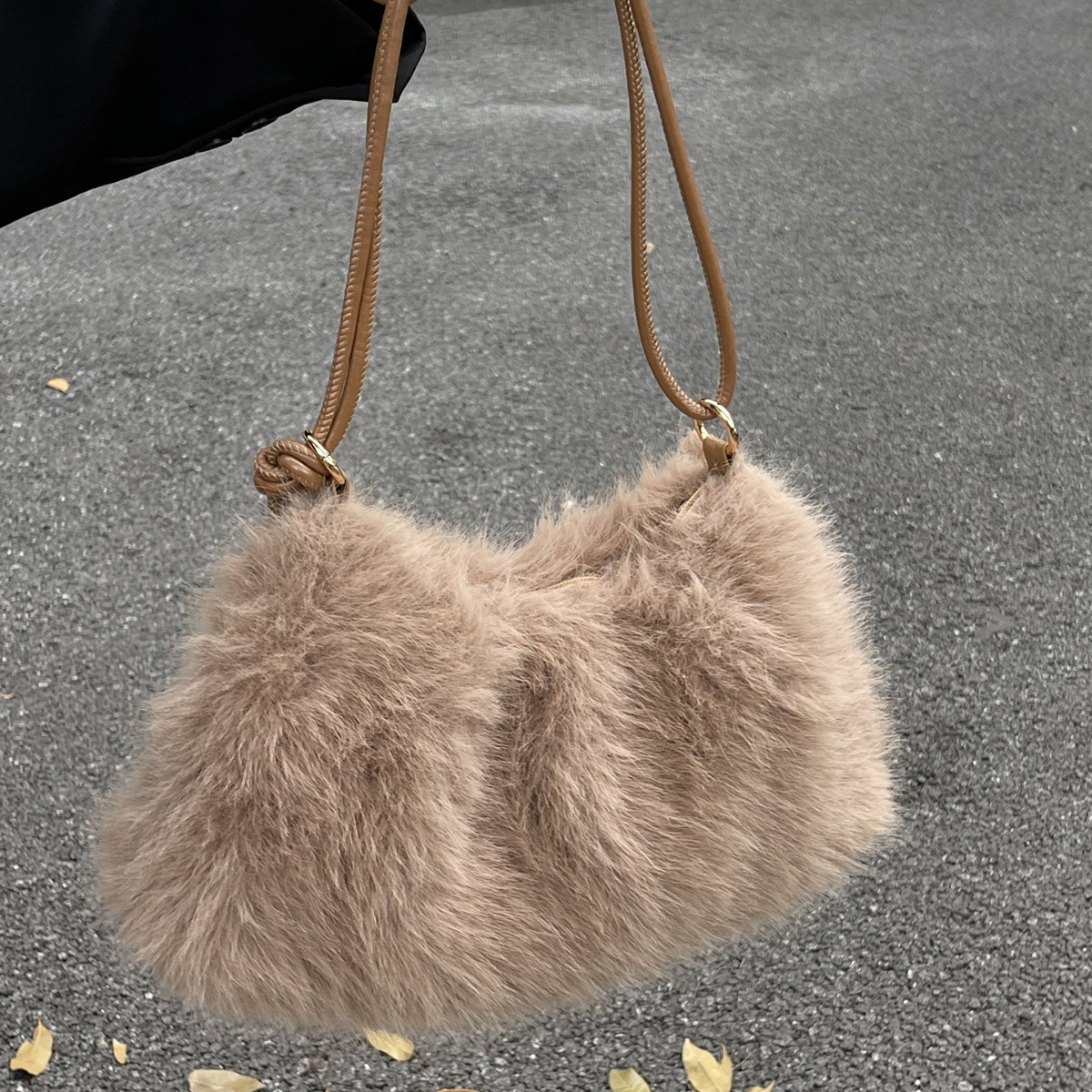 2025 New Imitation Fox Fur Women's Fashion Versatile Armpit Bag Casual Portable Shoulder Bag Small Fragrant Plush Bag