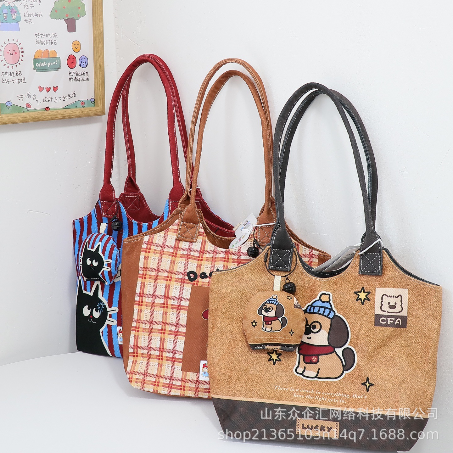 Fresh Sea Salt Stripes 2025 New Tote Bag High-Looking Cartoon Girl Heart Shoulder Bag Commuting Hand Carry