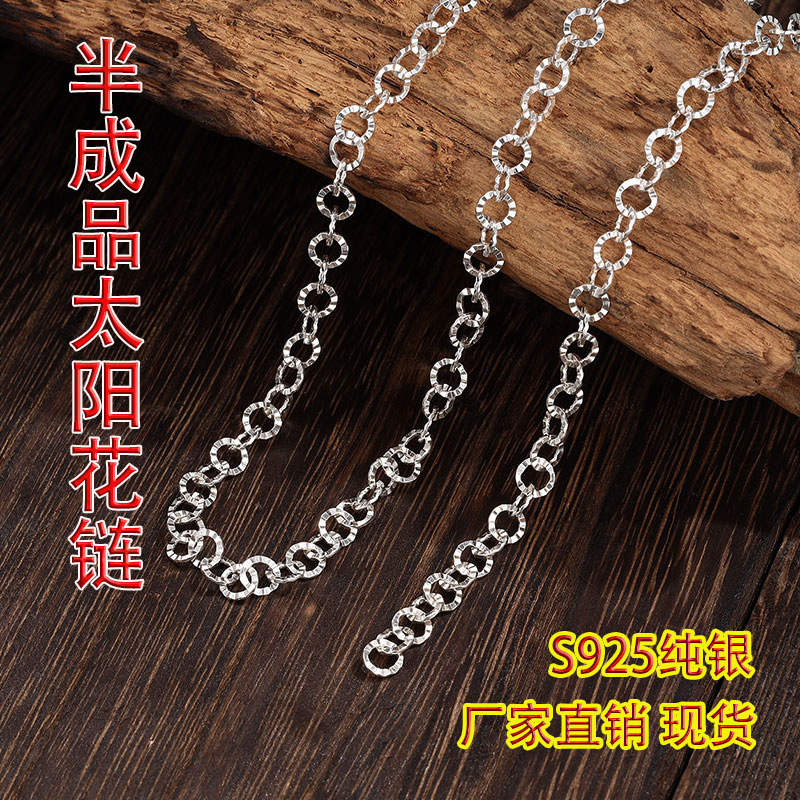 S925 Sterling Silver Sunflower Chain Thin Chain DIY Cross Embossed Chain Women's Bracelet Necklace Silver Semi-Finished Chain