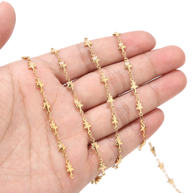 Amazon stainless steel oil pressure gold five-pointed star chain 18K real gold plating ladies clavicle necklace DIY chain