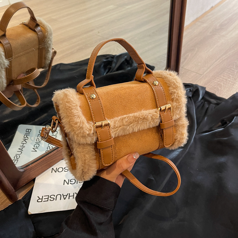 Cross-Border Autumn and Winter Small Bags 2025 New Bags for Women Korean Style Ins Crossbody Bag Fashionable Satchel Furry Small Square Bag
