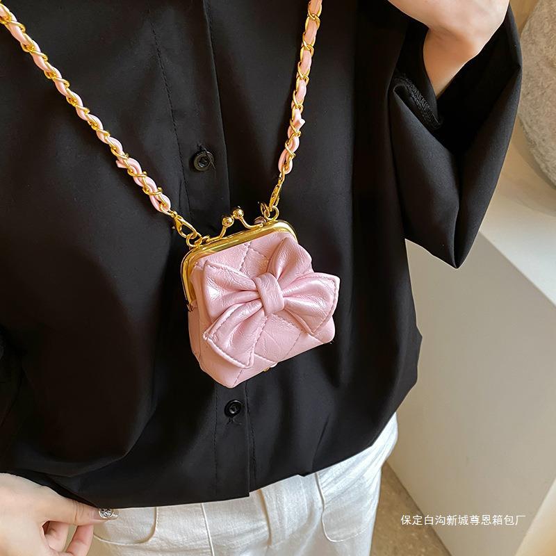 Niche Design New Mini Women's Bag Chain Mouth Gold Bag Fashionable Elegant Diamond Bow Shoulder Crossbody Bag Trendy