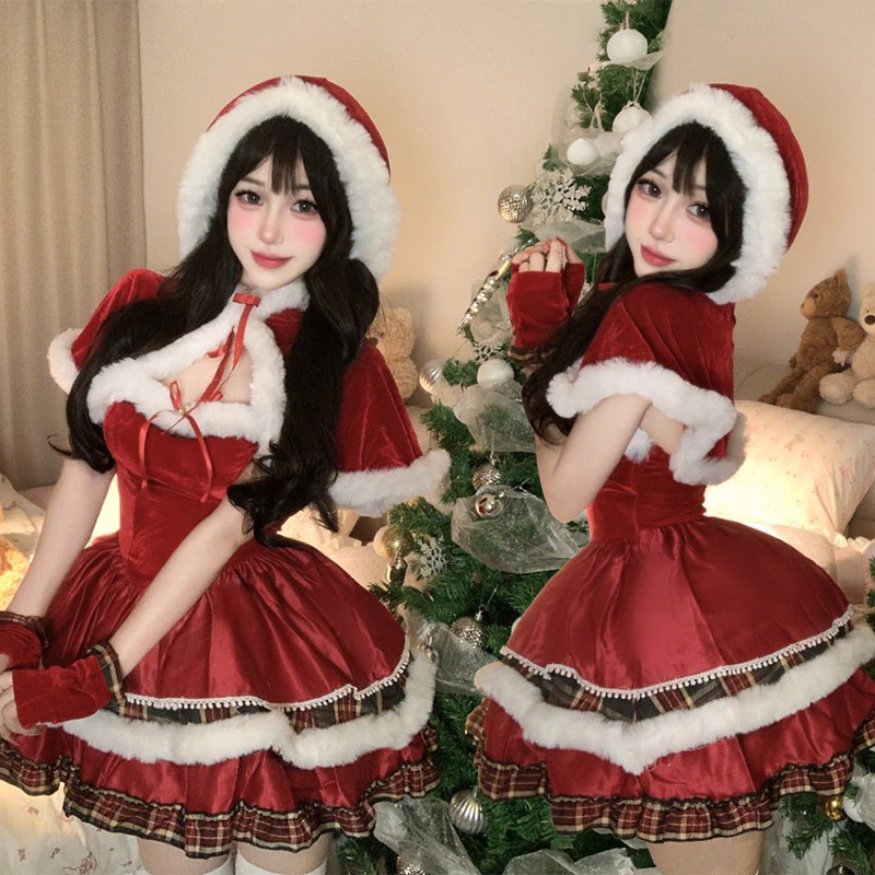 Christmas Costume Cross-Border Adult Clothing Lolita Japanese Sexy Bustier New Year Robe Cloak Snowman Dress