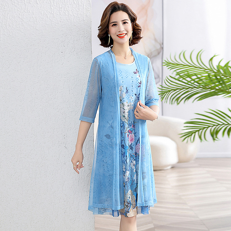 Mother summer plus size dress 2025 new style two-piece skirt middle-aged and elderly women's rich wife dress
