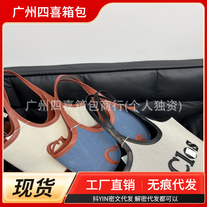 2025 New Clos Series Cowhide Stitching Canvas Tote Bag Niche Design Large Capacity Work Commuter Bag