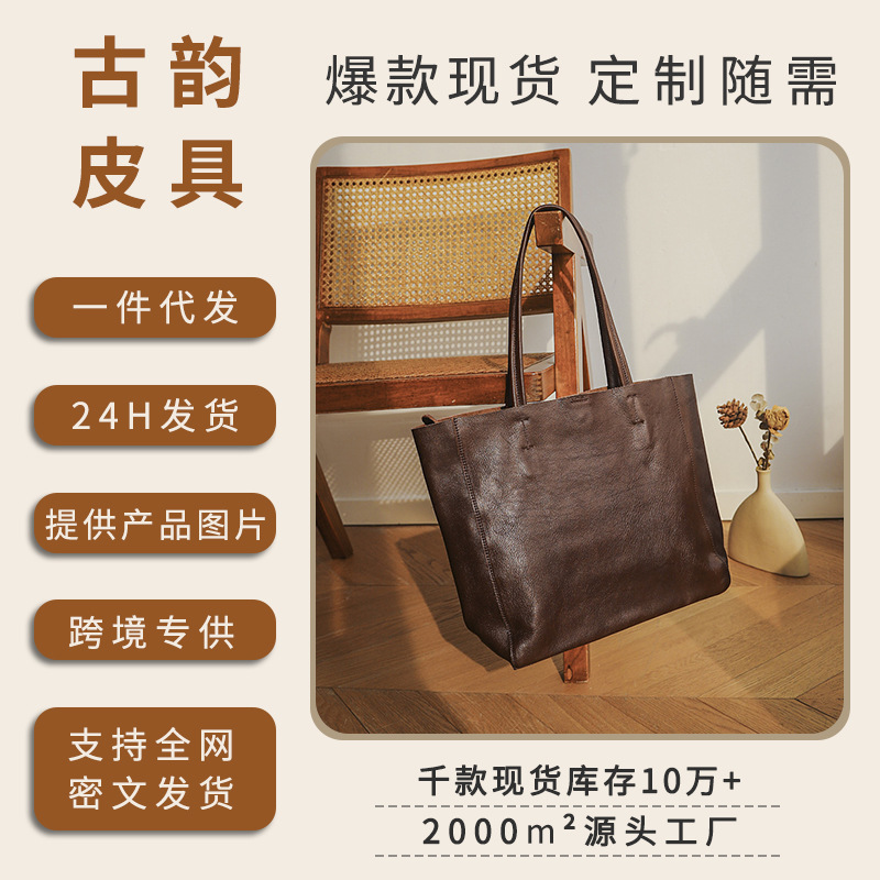 Genuine Leather Bag New Arrival Women's Artistic Handbag Vintage Soft Face General Bag Top Layer Cowhide Large Capacity Tote Bag