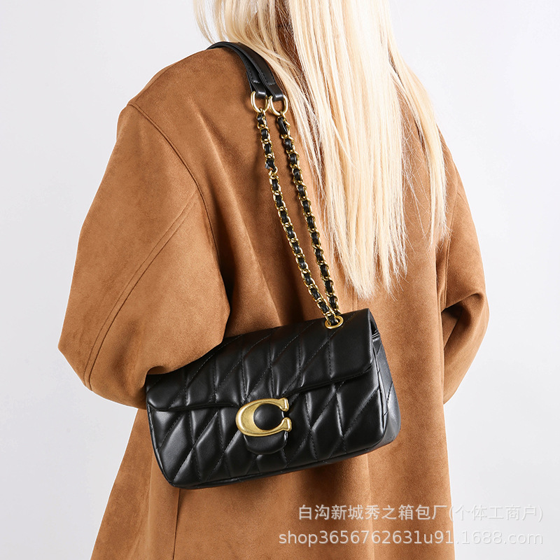Chain Crossbody Bag for Women, Cross-Border Rhombus Embroidery Thread Shoulder Bag, Fashionable and Versatile Underarm Women's Small Square Bag