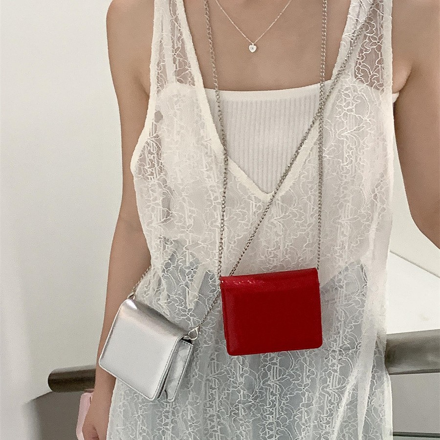 Spring and Summer New Lipstick Key Chain Bag Square Pu Leather Simple Mini Bag Fashionable Versatile Shoulder Crossbody Bag for Women