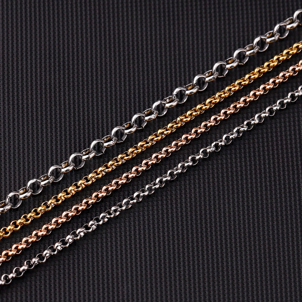 European and American Stainless Steel Gold O-Ring Necklace Women's Stylish Non-Fading 3mm Thick Chain Jewelry Chain Men's Accessories Wholesale
