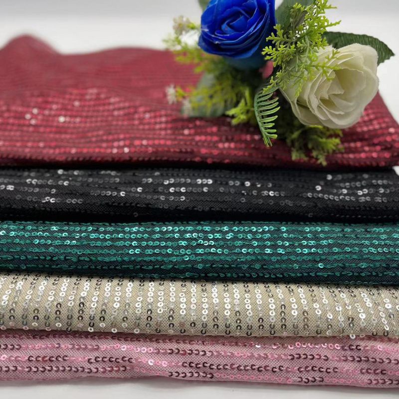 In Stock Multi-Color Dress Evening Gown Sequin Embroidery Lace Straight Strip Gold and Silver Mesh Base Sequin Embroidery Mesh Fabric