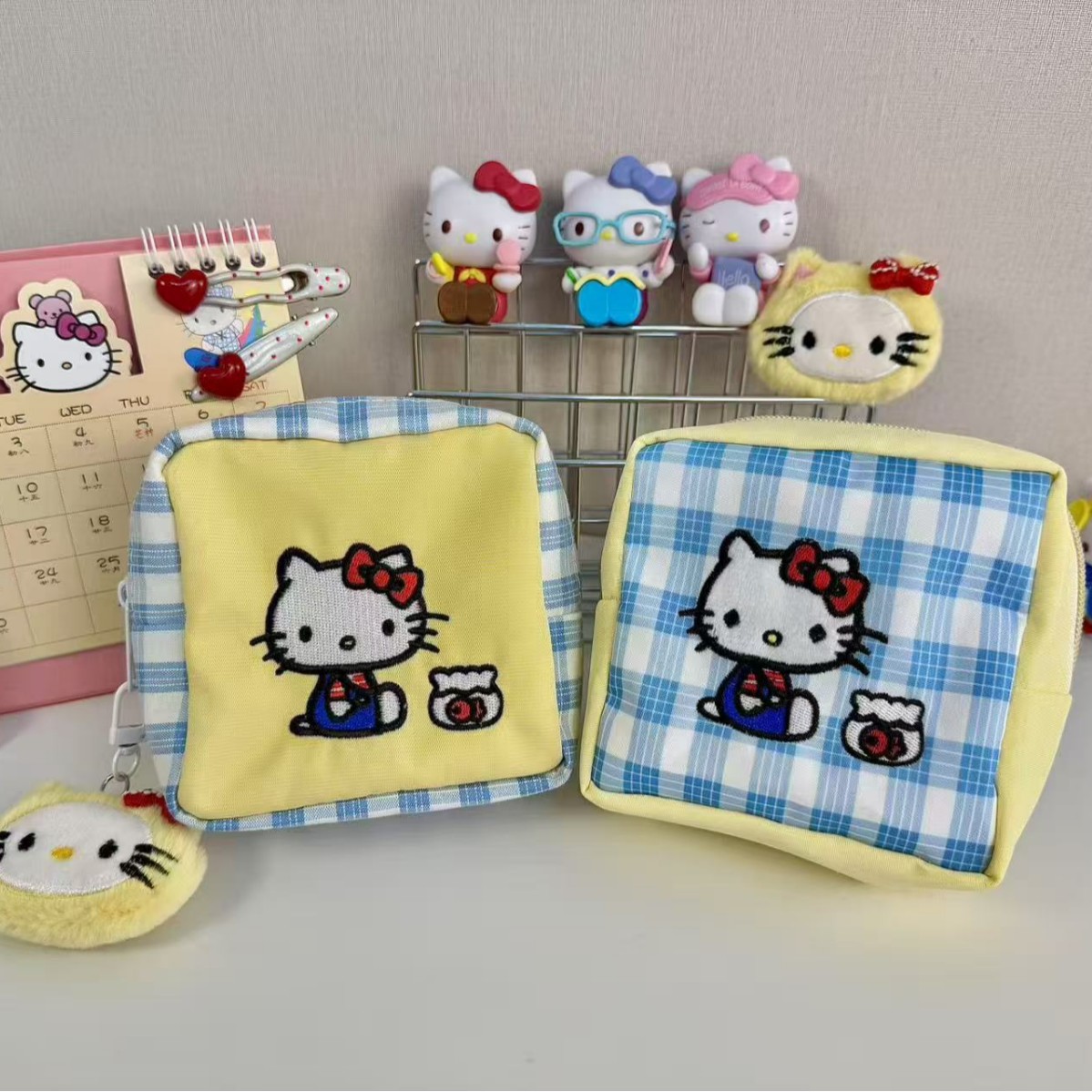 2025 New Cute Kitty Plaid Canvas Storage Bag Korean Style Polaroid Portable Large Capacity Cosmetic Bag