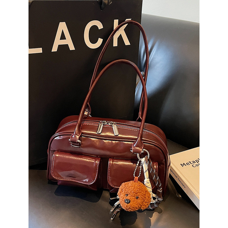 Factory Wholesale Korean Style Pu Bowling Armpit Bag for Women This Year's New Versatile Large-Capacity Oil Leather Shoulder Bag