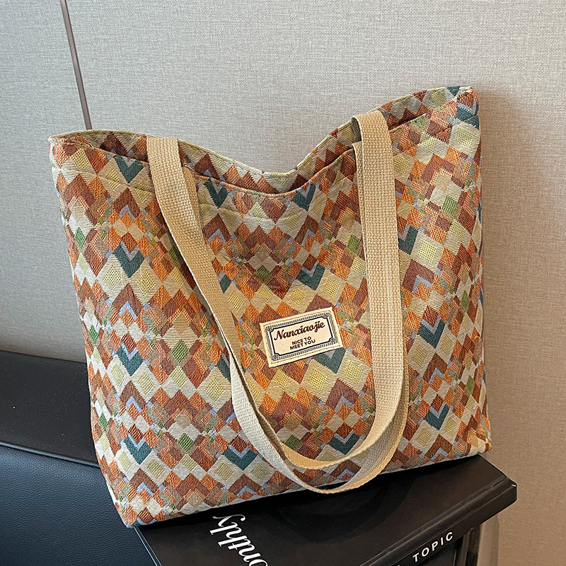 Large Capacity Handbag Women's 2024 New Ins Canvas Bag Large Capacity Fashion Work Clothing Class Shoulder Bag A16