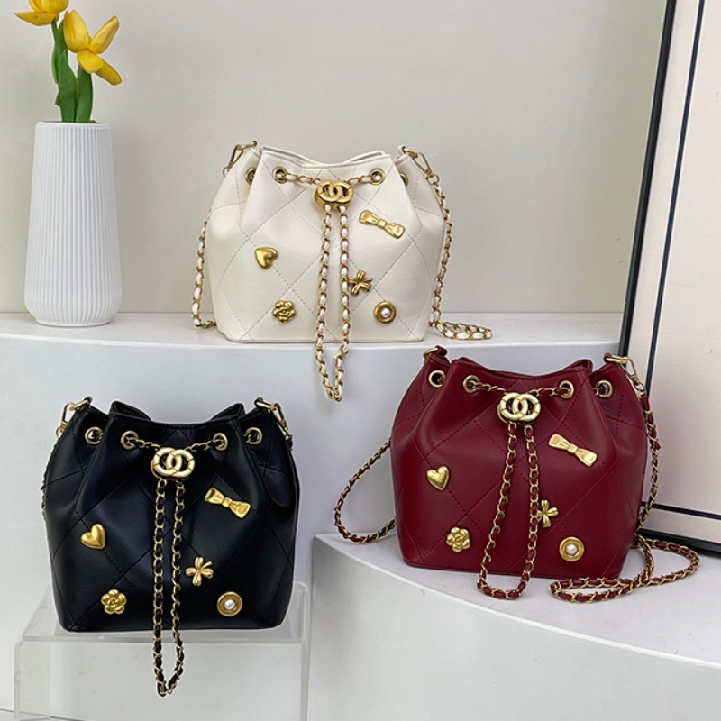 High-End Small Fragrance Bucket Bag Single Shoulder New Badge Series Retro Versatile Western Style Chain Women's Crossbody Bag