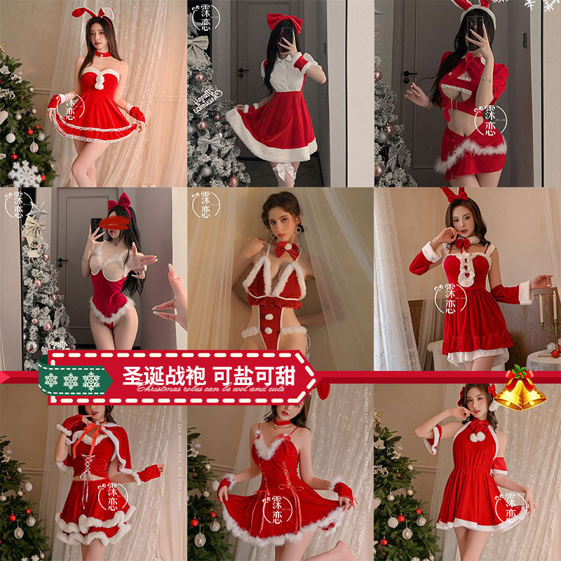 Sexy Nightgown Christmas Uniform Set Velvet Tube Top Dress Nightclub Pure Desire Hot Girl Waist-Cinching Slim-Fitting Hip-Hugging Dress