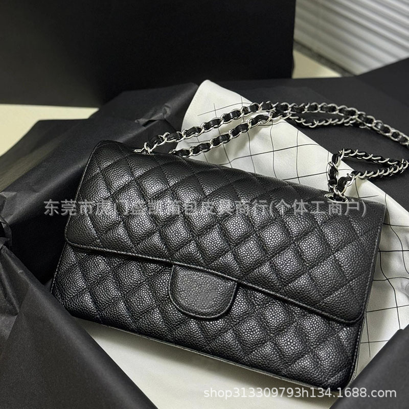 2025 New Style Chanel-Inspired Cf Caviar Leather Quilted Chain Bag Underarm Bag Small Square Bag Single Shoulder Crossbody Women's Bag