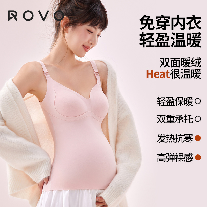 Rovo Autumn and Winter Warm Maternity Base Layer Vest Anti-Sagging Front Button Nursing Bra-Free Nursing Camisole