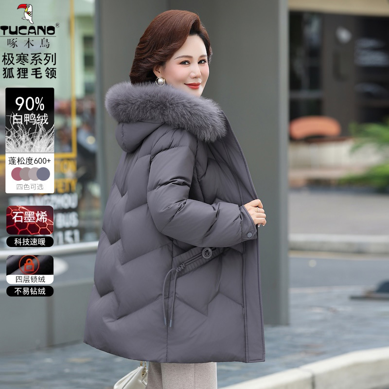 2025 New Style Elderly down Jacket for Mothers, Mid-Length, Large Size, Thickened Fur Collar Coat