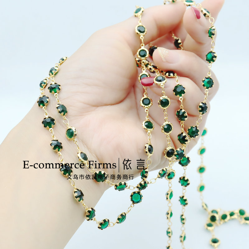 7mm Green Crystal Gold-Plated Copper Chain Color-Preserving Chain DIY Necklace Bracelet Jewelry Material Accessories Metal Chain