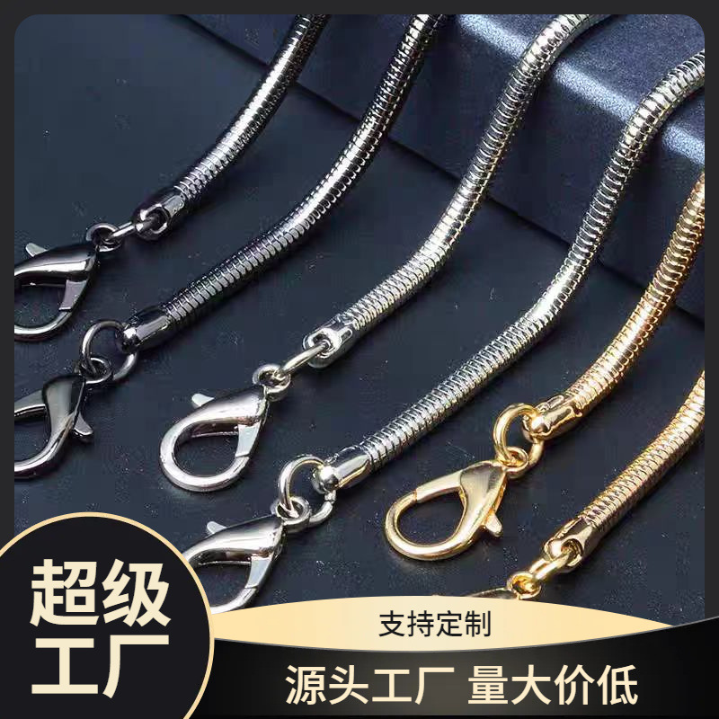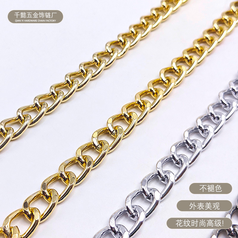 Manufacturer's Cross-Border Spot Source Aluminum Grinding Chain Women's Bag Semi-Finished Chain Bag with Shoulder Strap Accessories Chain Double-Sided Thick Line